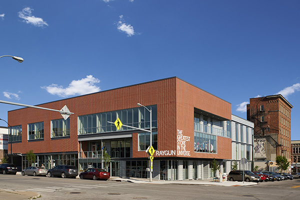 Anchoring a prominent corner in Des Moines' East Village, 505 East Grand rises as a contemporary counterpoint to its historic surroundings. The mixed-use building leans into the slope of the site, stepping gracefully to meet the grade while revealing a dynamic storefront presence. The ground level acts as a billboard for the flagship retail tenant—bold glazing, crisp detailing, and strategic lighting turn the facade into a living brand expression. Above, office suites open onto private balconies carved into the massing, offering tenants fresh air, skyline views, and a sense of spatial identity. The building's red brick skin nods to its context but reinterprets it with modern proportion and restraint, balancing texture and transparency. 505 East Grand adds density, visibility, and vibrancy to the neighborhood, stitching together commerce, culture, and craft in one confident gesture.