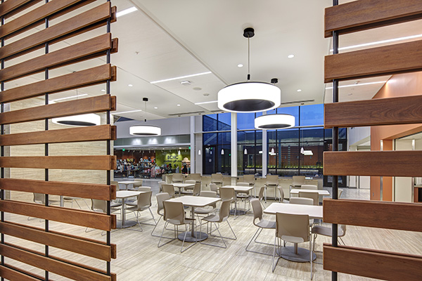 Design prioritized a patient-centered, healing environment by orienting the addition to maximize daylight and views, reinforcing the therapeutic link to nature. Durable, warm materials—zinc panels, Ipé wood, glass, travertine tile, and wood finishes—shift the building from institutional to uplifting and human-centered. A cantilevered second floor doubles as a covered drop-off and conceals rooftop mechanicals. Sustainable systems and infrastructure upgrades improve efficiency, resilience, and future capacity.