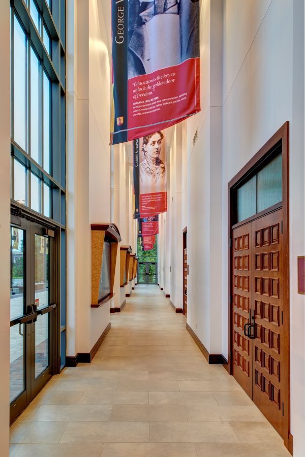A landmark between CY Stevens and Jack Trice Stadium, the Iowa State University Alumni Center was designed as a true front porch for Cyclones past and present. Its warm brick, limestone, and tall arched windows tie directly into campus traditions, while the interiors offer flexible spaces that welcome everything from weddings and reunions to conferences and game-day gatherings.