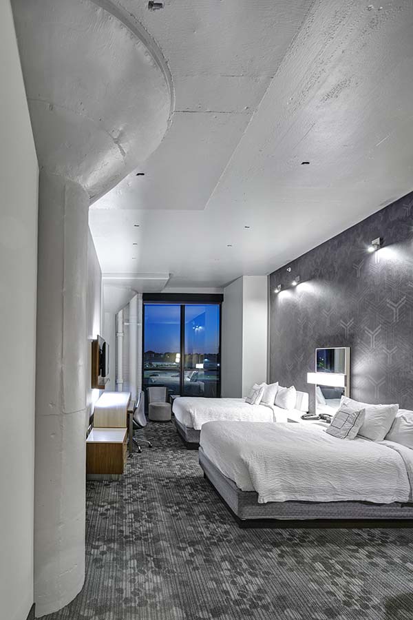 Set inside a 6-story mid-century manufacturing building, the Courtyard at TechWorks keeps the industrial bones—tall volumes, robust structure—and pairs them with contemporary rooms, flexible meeting space, and trail-close access to downtown. The conversion anchors the TechWorks district alongside the John Deere Tractor & Engine Museum, advancing Waterloo's broader riverfront revitalization. Designed and executed as a historic adaptive-reuse, the project delivers modern hospitality within a piece of the city's working heritage.