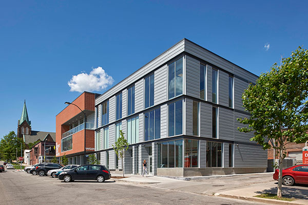 Anchoring a prominent corner in Des Moines' East Village, 505 East Grand rises as a contemporary counterpoint to its historic surroundings. The mixed-use building leans into the slope of the site, stepping gracefully to meet the grade while revealing a dynamic storefront presence. The ground level acts as a billboard for the flagship retail tenant—bold glazing, crisp detailing, and strategic lighting turn the facade into a living brand expression. Above, office suites open onto private balconies carved into the massing, offering tenants fresh air, skyline views, and a sense of spatial identity. The building's red brick skin nods to its context but reinterprets it with modern proportion and restraint, balancing texture and transparency. 505 East Grand adds density, visibility, and vibrancy to the neighborhood, stitching together commerce, culture, and craft in one confident gesture.