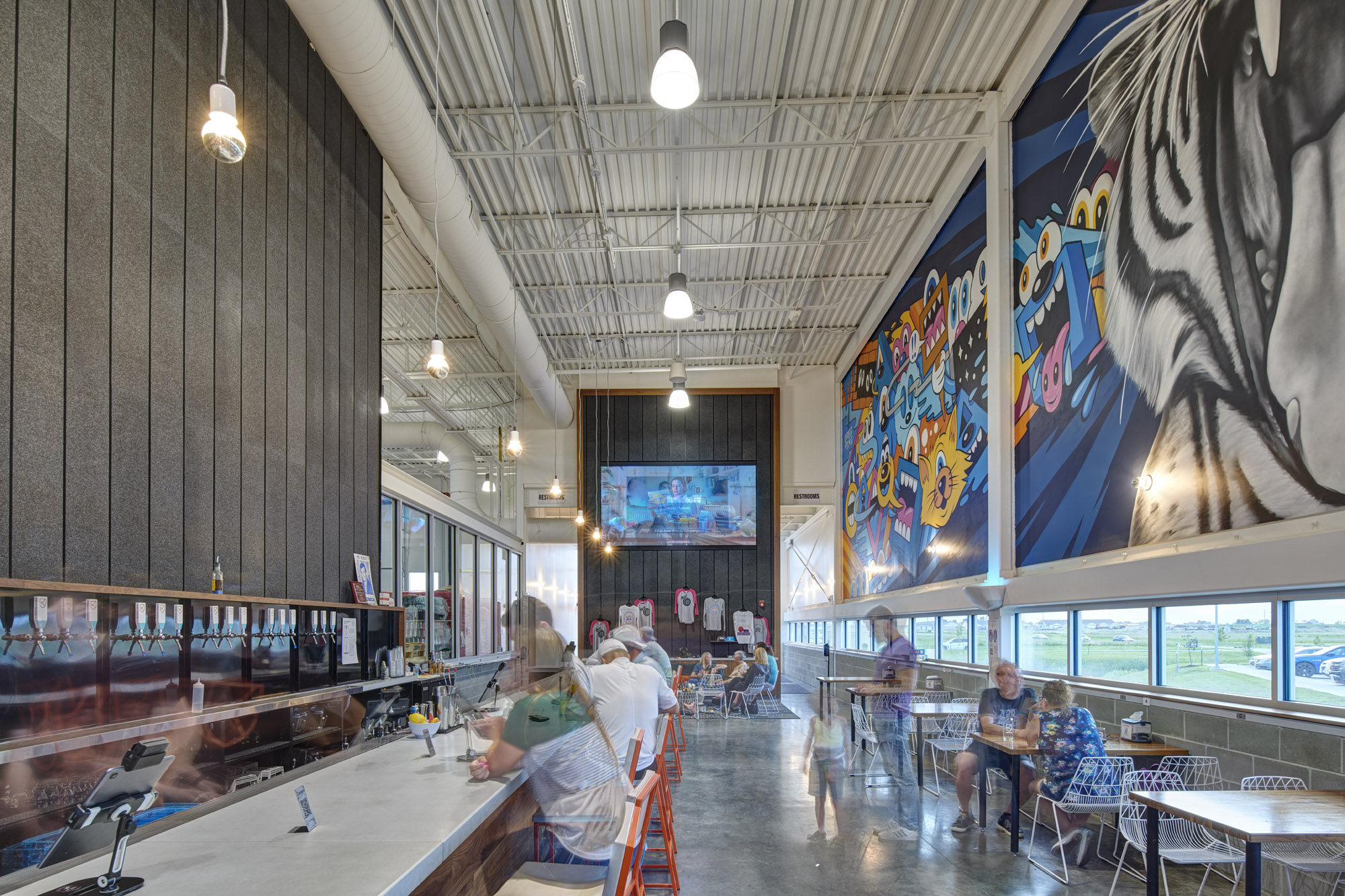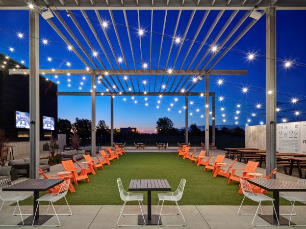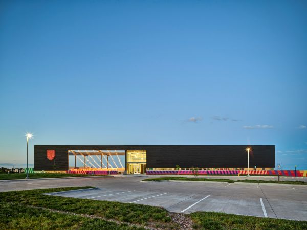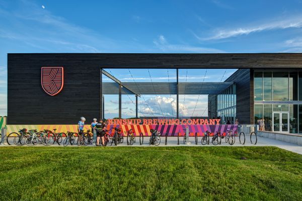 Set near the Raccoon River Valley Trail, Kinship Brewing draws people in with its charred-wood façade, expansive outdoor patio, and half-acre dog park—beautifully blending passive sustainability with neighborhood-focused design. The 13,000-square-foot building on a six-acre site nods to its industrial roots while embracing art and daylight. A serving-tasting layout with a transparent production area keeps the beer-making in view, anchored by a 300-foot art wall that frames space and frames stories. Minimal exterior finishes mean low maintenance but maximum impact. The project is not just a brewery—it's a gathering place where biking, dogs, art, and craft beer converge.
