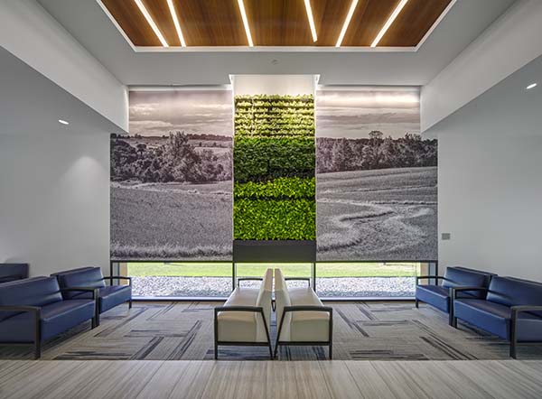 The expansion includes an upgraded Rural Health Clinic and Visiting Specialty Clinic, a new Infusion Center with views to a secluded courtyard, an integrated Therapy and Rehabilitation Center, and added educational and community spaces. Human-centered design—natural light, warm finishes, calming colors, living green walls, and regional imagery—reduces stress and connects patients with nature.